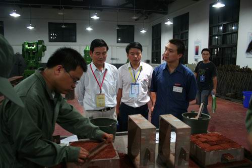 9月26日晚7点10分,省教育厅王文斌处长来到南校区工程训练中心,仔细查看员工进行车工、钳工、铸造等基本技能的操作。与训练中心的周梓荣主任进行了认真交流,并全面了解了员工的技能培训课时、训练中心的设备情况等。