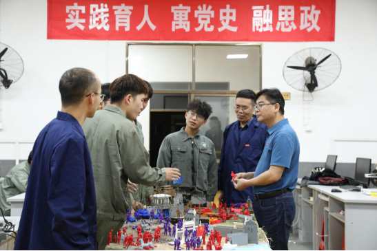 据悉,早在寒假期间,工程训练中心党总支就多次组织支部书记和教研室主任商讨如何将课程思政、党史学习教育与工程训练相结合,充分挖掘和综合利用中心的教育资源,创建实践育人新模式。彭文静和刘文锋两位老师在2020年立项的省级一流本科课程——先进制造技术实习的基础上继续开展课程建设,以3D打印实训课程为例,持续深入地开展实践类教学课程改革,全方位融入课程思政内容,采用项目式教学法,以项目为主线、教师为引导、员工为主体,将党史教育融入课程实践,不断强化红色文化的育人价值。