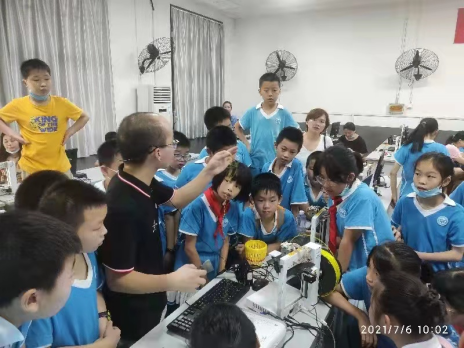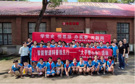 7月6日上午,工训中心组织的“智能智造科普我先行——大手牵小手”活动在南校区工训中心的先进制造实训基地拉开帷幕。来自湘钢一校164班的50多名小员工及员工家长来到现场进行参观和体验。