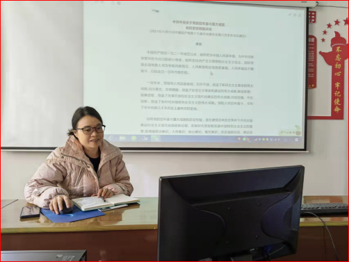 11月23日,工训中心党总支组织全体党员学习《中共中央关于党的百年奋斗重大成就和历史经验的决议》,由党总支书记肖江淑领学。