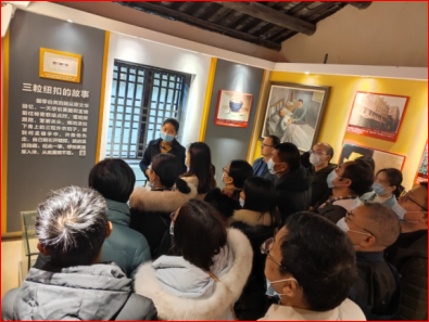 活动的第二站,党员们来到缪伯英同志的故居进行参观。大家通过听讲解,看实物、图片等种形式了解到缪伯英的生平事迹,认真领会到老一辈革命家的革命精神内涵。作为中国共产党的第一位女党员,缪伯英同志是中国共产党具有较深理论修养和丰富实践经验的干部,一直以来战斗在工人运动、妇女运动和员工运动的第一线,她是中国妇女放运动的先驱者。在倾听了“三粒纽扣”的故事后,大家更是深受感动。