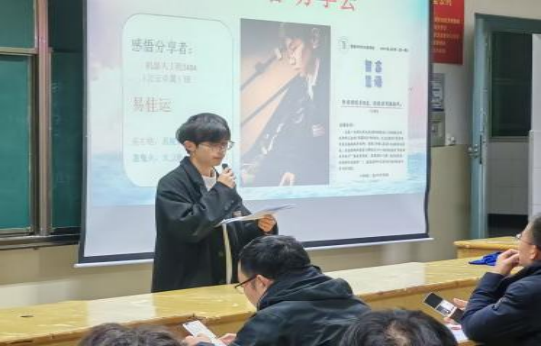 活动伊始,周老师对开学以来的员工工作进行简要总结,指出学风建设方面存在的问题。在学习经验分享环节,上学期期末成绩总分排名第一名的戴正意同学、英语四级考试第一名的廖柏华同学依次上台,分享他们在期末考试、英语四级备考等方面的学习经验。易佳运同学就“智言慧语”的学习体会进行发言,表达了对毛泽东同志的名句“为有牺牲多壮志,敢叫日月换新天”的深刻感悟。