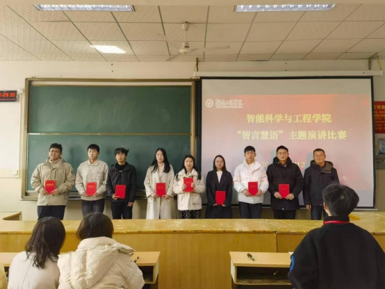 评委们秉持公平、公正、公开的原则,认真聆听每位选手的演讲,并依据严谨的评分标准进行细致评议。最终,经过激烈角逐,郭馨妮获一等奖;黄一茜、江锦程、肖莎怡获二等奖;倪梓洋、李长珅、王圣杰、于广大获三等奖。